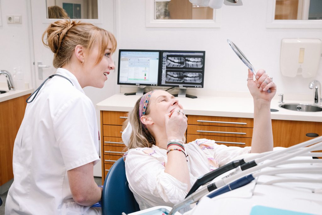 Tijdens behandelingen draag ik een loepbril. Deze bril vergroot alles 2.8 keer. De inclinatie hoek en werkafstand bevorderen mijn ergonomische houding. Daarnaast ben ik preciezer in mijn metingen, maar zijn ook cariësactiviteit en afwijkingen in de mond voor mij door de loepbril beter zichtbaar.